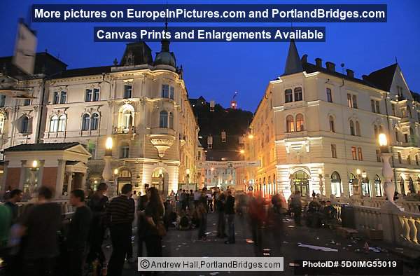 Ljubljana Triple Bridge at Dusk, reflections (3)