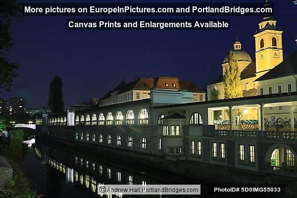 Ljubljana Triple Bridge at Dusk, reflections (2)