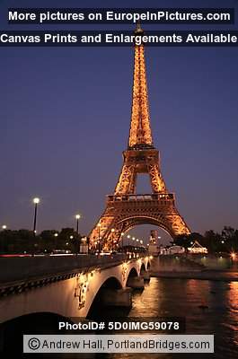 Eiffel Tower from Pont Alexandre III, Dusk, Paris