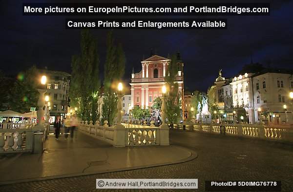 Triple Bridge, Franciscan Church, Dusk, Ljubljana, Slovenia (2)