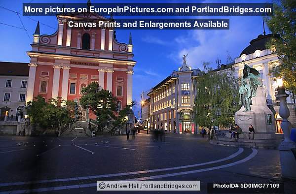 Preseren Square, Franciscan Church, Dusk, Ljubljana
