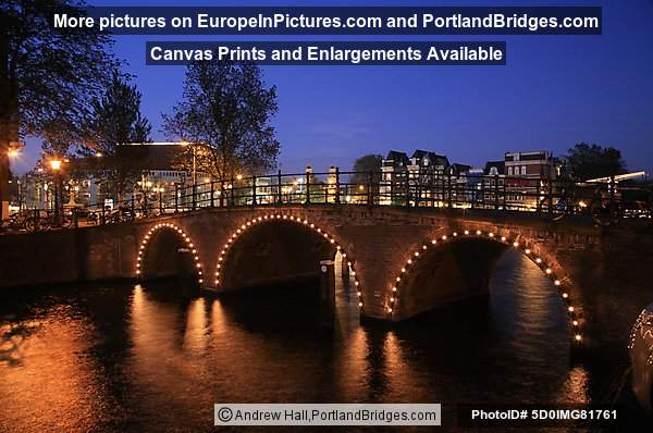 Bridge over Dijver Canal, Dusk, Brugge, Belgium