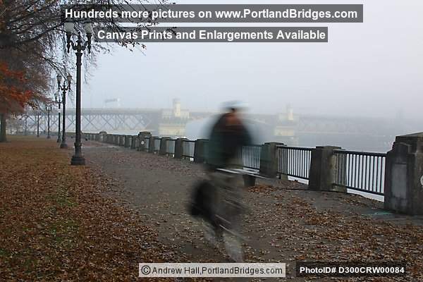 Salmon Street Fountain, Cyclist, Fall Leaves, Tom McCall Waterfront Park