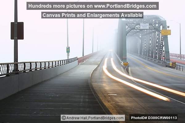 Morrison Bridge at Daybreak, Foggy, Lit Up