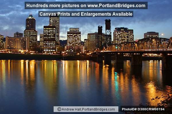 Portland Cityscape, Dusk, Reflections, Steel Bridge