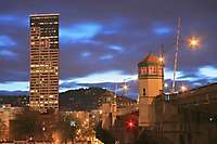 Steel Bridge, US Bancorp Tower, Fall Leaves, Portland