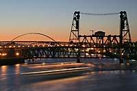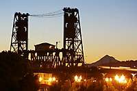 Steel Bridge, Fremont Bridge, Orange Sky, Dusk
