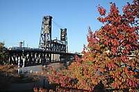 Steel Bridge, Fall Leaves, Tom McCall Waterfront Park, Portland