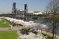 Tom McCall Waterfront Park, Blossoms, Steel Bridge