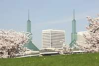 Downtown Portland, Cherry Blossoms, View from Steel Bridge