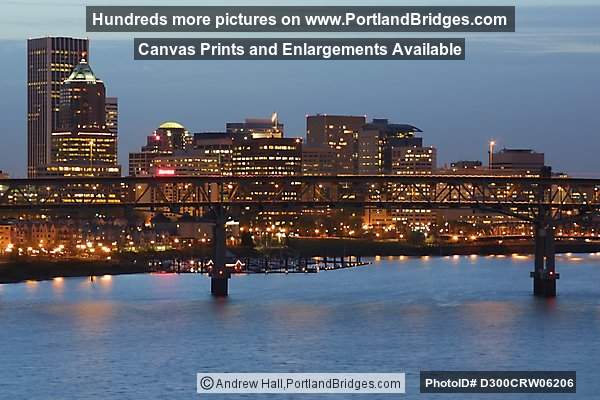 Marquam Bridge, Portland Cityscape from Ross Island Bridge, Dusk