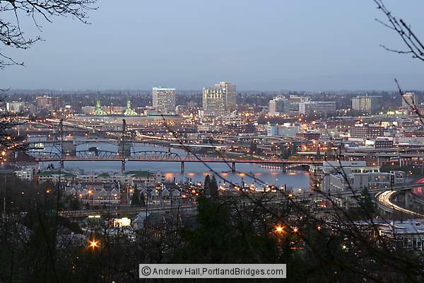 Willamette River, Bridges, Buildings, Facing NE Portland, Dusk