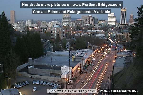 Portland Buildings, Dusk, Car Lights