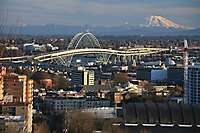 Fremont Bridge and Mt. Saint Helens, Daytime