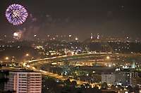 Fremont Bridge and Mt. St. Helens, Dusk, fireworks