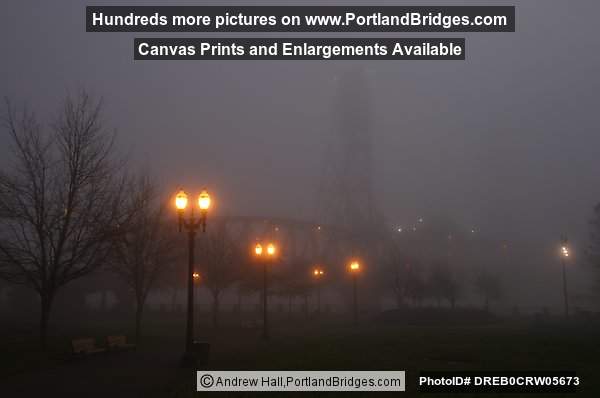 Morrison Bridge at Daybreak, Foggy, Tom McCall Waterfront Park
