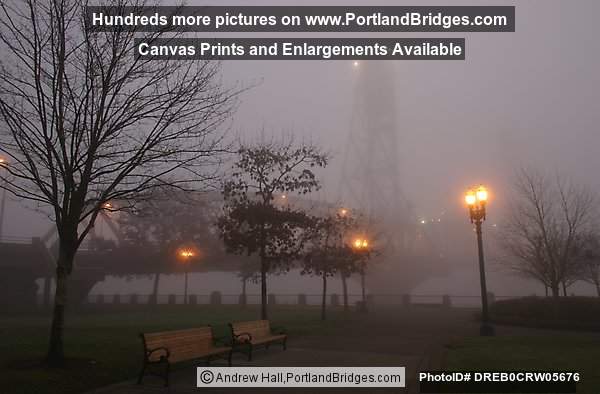 Morrison Bridge at Daybreak, Foggy, Tom McCall Waterfront Park