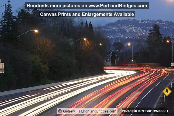Terwilliger Curves, Car Lights, Mt. Hood, Dusk