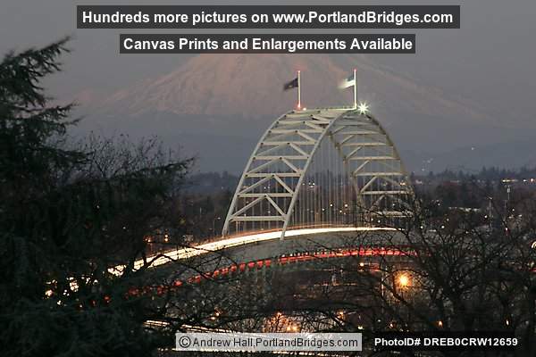 Fremont Bridge with Mt. St. Helens, Car Lights, Dusk