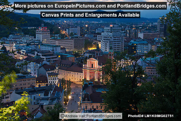 Preseren Square Dusk, From Castle Hill, Ljubljana