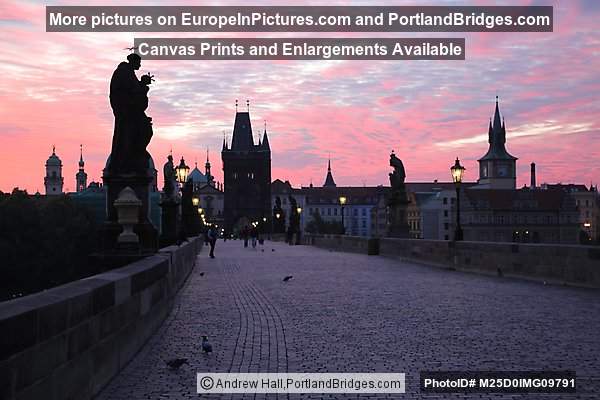 Charles Bridge, Daybreak, Orange Sky, Prague