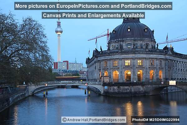 Berlin TV Tower, Bode Museum, Spree River, Dusk