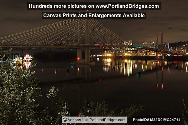 Portland Tilikum Crossing Bridge, Willamette River Reflections, Night