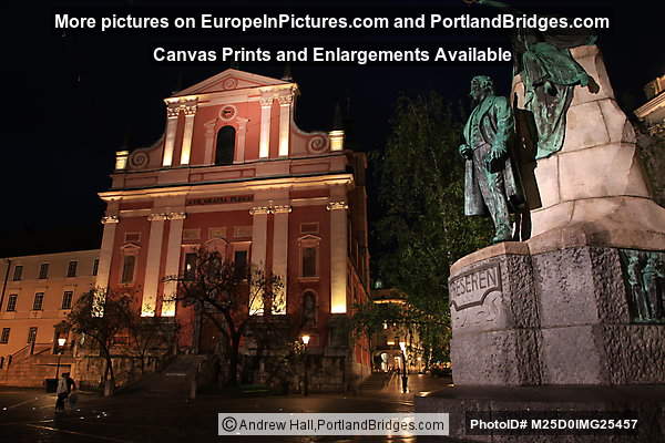 Preseren Square, Franciscan Church, Dusk, Ljubljana