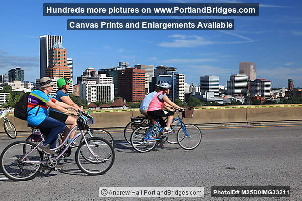 Bridge Pedal Cyclists on Marquam Bridge, City View