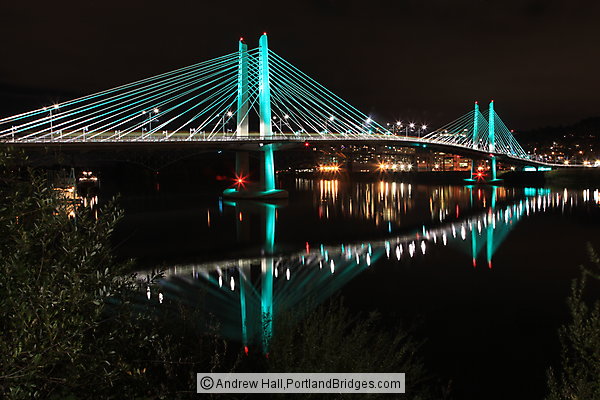 Portland Tilikum Crossing Bridge, Willamette River Reflections, Night