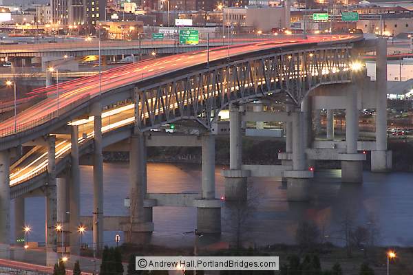 Morrison and Marquam Bridge, Light Streaks, Dusk