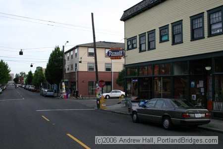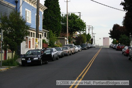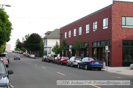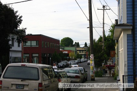 At Failing Street, a pedestrian/bicycle bridge over I-5 once closed due to crime considerations has been re-opened, connecting Mississippi to the new Interstate Max stop on N. Interstate Avenue. This makes Mississippi a very attractive place to live: thriving local businesses, decent houses (not the most expensive in Portland but quickly shooting up), and a quick train to downtown Portland. Freeway access to I-405 is also very quick.